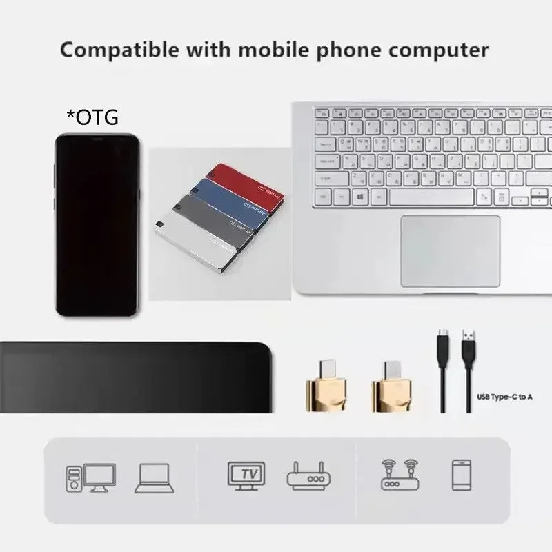 -Compatibility: Windows7/8/8.1/10/MAC operating system -Drag and drop files to save, plug and play -Ultra thin and compact, perfect fit for the palm, easy to carry -Fast data transfer via USB 3.1 connection -Easy to use storage solution -USB 3.1 is super high-speed, the data transmission rate can reach 5 Gbps, 10 times faster than the USB 2.0 standard, and compatible with USB 2.0 -Size: 100x32x9mm -Material: aluminum alloy -Color: black, blue, red, silver -Port: Type-C/USB3.1 -Capacity: 2TB/4TB/8TB/16TB/30TB/64TB -Speed: USB 3.1 Factory direct supply, support wholesale, large quantity, cheap price! Note: Due to the color calibration of each monitor, the color may be slightly different. Please allow slight measurement deviation due to manual measurement Original portable external hard disk drive: 1. Q: Is this an external hard disk or just a box? A: Yes, it is an external hard disk drive without a cover or cover. 2. Q: Can I connect to a laptop and transfer files? A: Yes, it is compatible with laptops. It is a portable hard disk for transferring and storing files. 3. Question: NTFS or exFAT? A: Factory acceptance test The package includes: 1 * Portable external hard disk 1 * USB cable