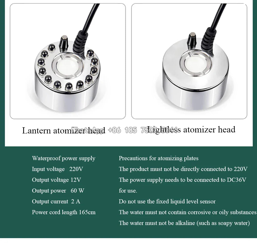 1. The atomizer has water level requirements. The effective water level is 4-8 cm. If the water level is too deep or too shallow, it will affect the normal operation of the atomizer. If the water depth exceeds 10CM, you can choose a package with a buoy.