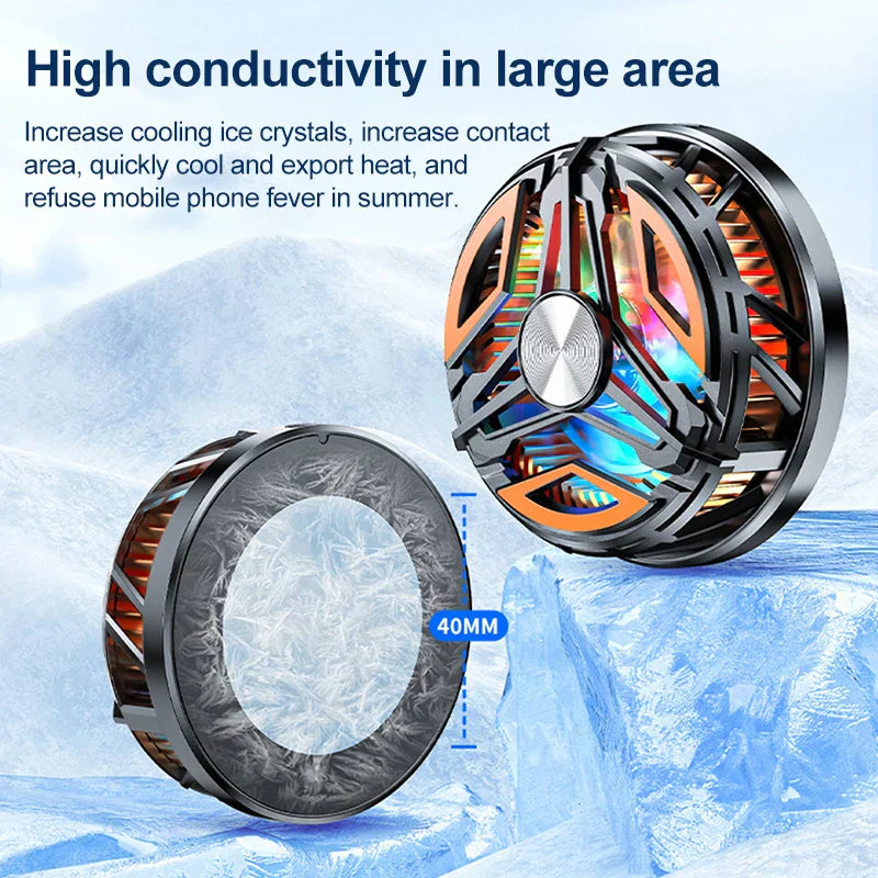15W rapid freezing,Radiator capable of freezing,The cold-gathering silica gel surface, the contact surface with the mobile phone is made of silica gel, which has strong cold-gathering performance and wide icing surface.