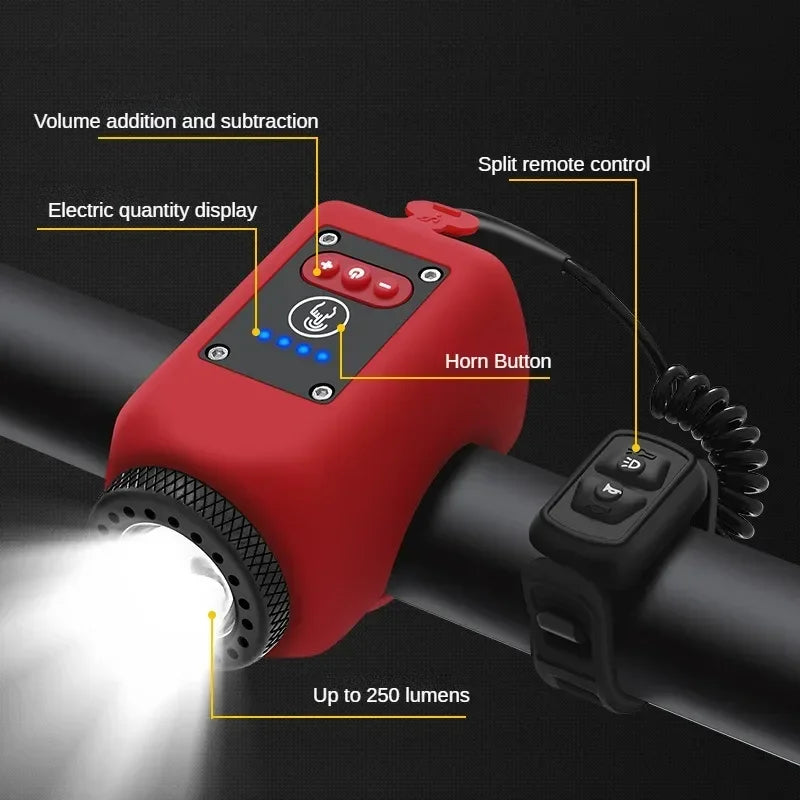 Introducing our innovative High-Brightness Bicycle Light with integrated Bicycle Horn Function.