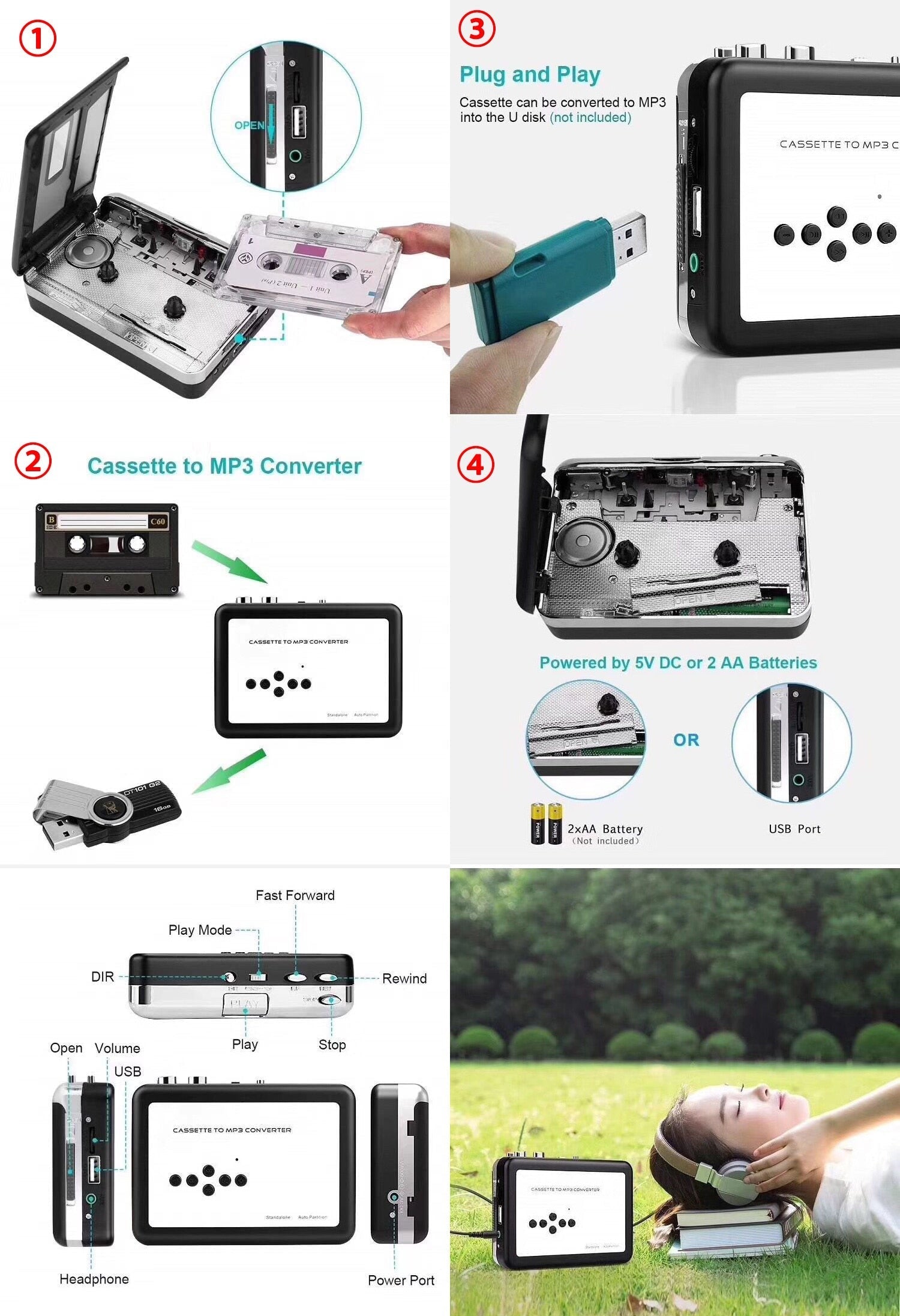 - Can be used as personal cassette player.