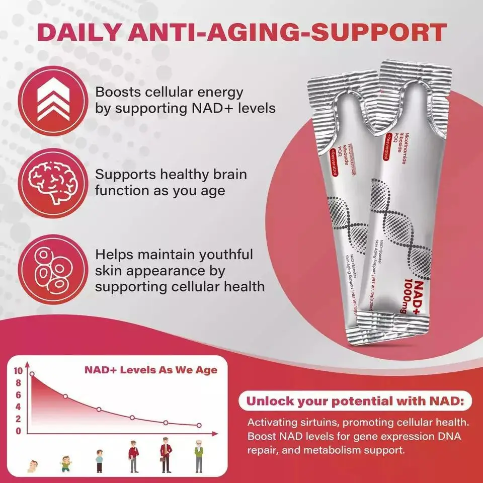 High-Potency NAD+ Complex – 1000mg Per Serving: Each stick pack delivers 1000mg of NAD+ support with Nicotinamide Riboside, Resveratrol, and PQQ to help promote healthy aging, support cellular energy production, and improve overall vitality.