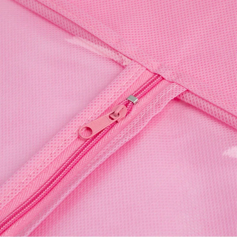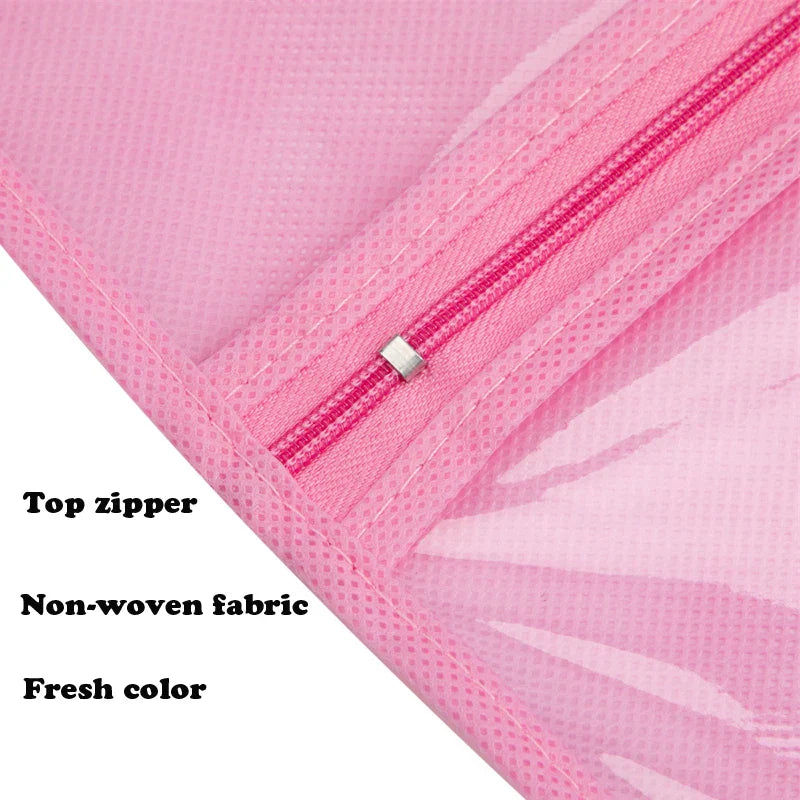 1. Material: the bag is plastic and non-woven. The middle of the bag has a smooth and durable zipper, which makes it easy for you to access the wig. Plastic hooks are durable. Top grade plastic zipper.