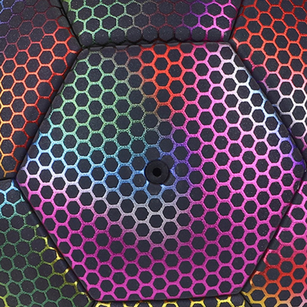 This football is made from high quality reflective leather with a holographic effect, and has the feel and durability of a normal football. The ball looks black when it's completely dark and doesn't illuminate anything, but when you take a photo/video with flash, the ball lights up on your phone screen.