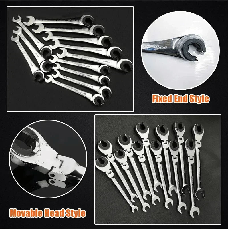 Open Tubing Ratchet Wrench (Fixed Head-Flexible Head 2 IN 1)