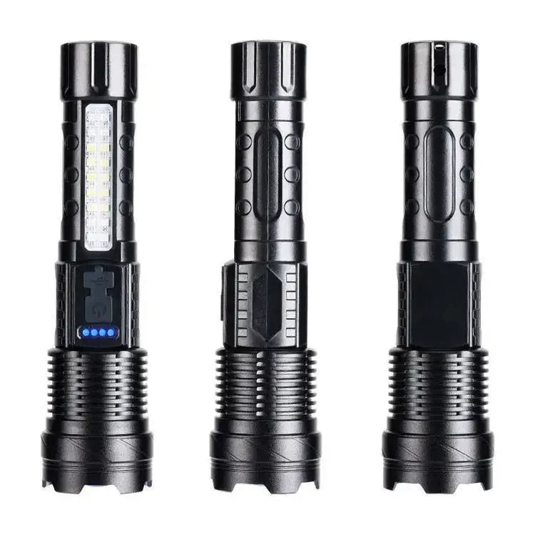 Strong light long-range, with side lights, power display, with tail rope, with pen clip for easy portability, three light sources to meet a variety of scenarios |