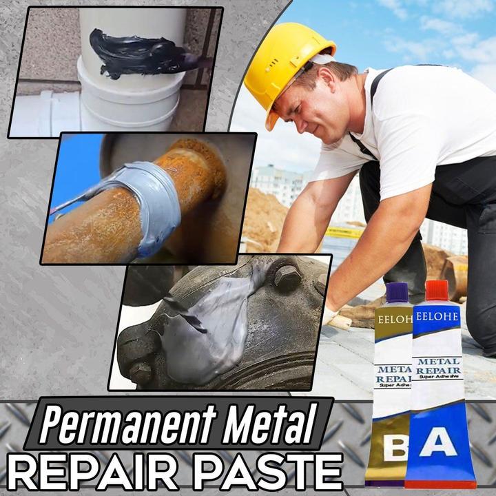 This Permanent Metal Repair Paste is a fast-setting version of a two-part epoxy cold weld system that provides strong, lasting repairs to metal and multiple other surface types. It forms a permanent bond and can be shaped, tapped, filed, sanded and drilled after fully cured in 3-4 hours.