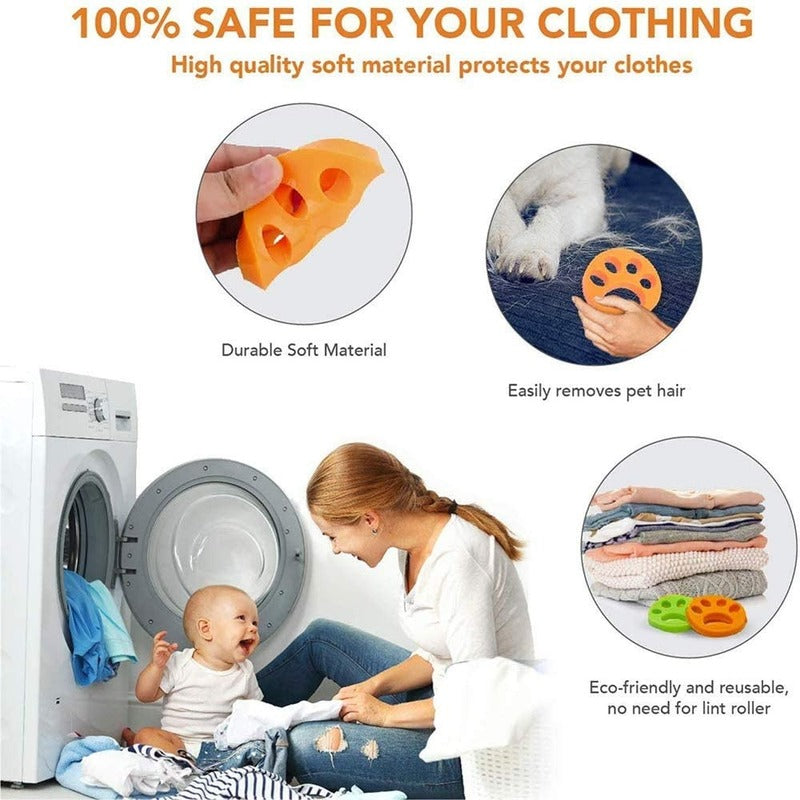 The paw removes animal hair from your clothes while it washes and dries. And it works both in the washing machine and in the dryer.