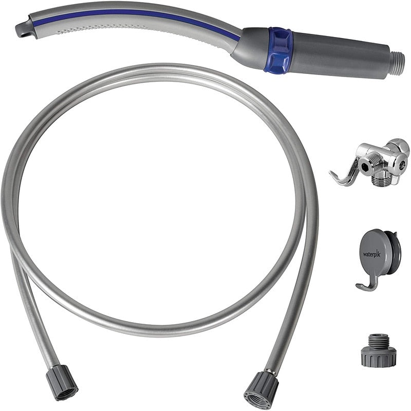 The Waterpik Pet Wand PRO Indoor-Outdoor 13 in. Dog Shower Attachment is designed with you and your dog in mind. Now you can have a professional grade product for a superior clean at home. The Pet Wand PRO features a unique WaterComb spray that provides maximum cleaning coverage and the power you need for effective rinsing of thick fur. It also includes a targeted narrow spray that is perfect for hard-to-reach or sensitive areas. For one-handed operation, the EasySelect dial allows you to control the spray settings and change water pressure. You can connect the Pet Wand PRO to your existing shower the convenient 2-way diverter lets you easily switch between the shower head and the Pet Wand PRO. Alternatively, use it outdoors with the included outdoor adapter.