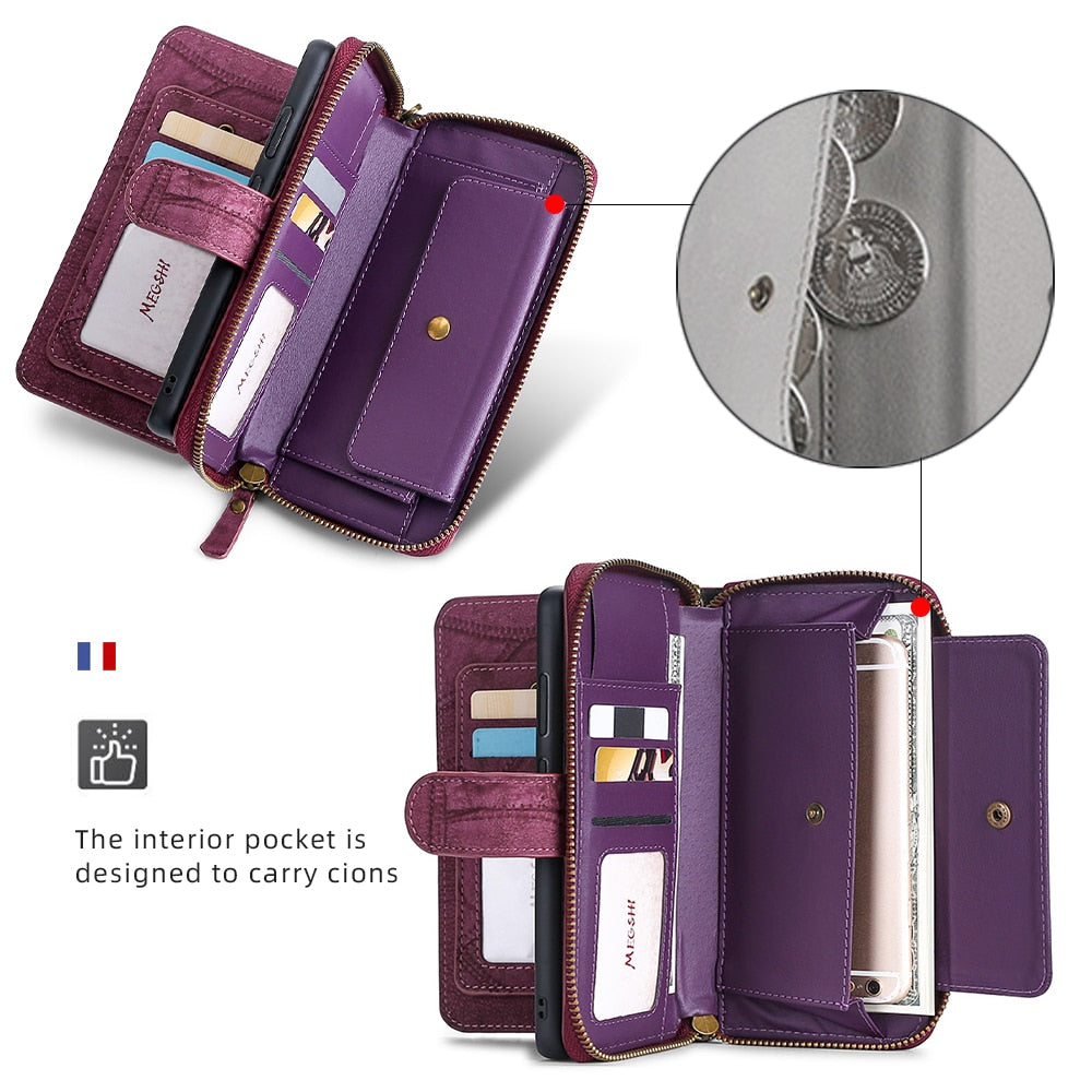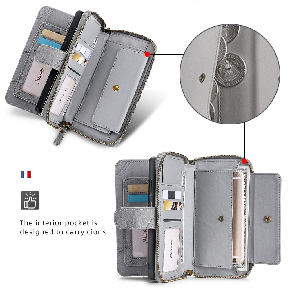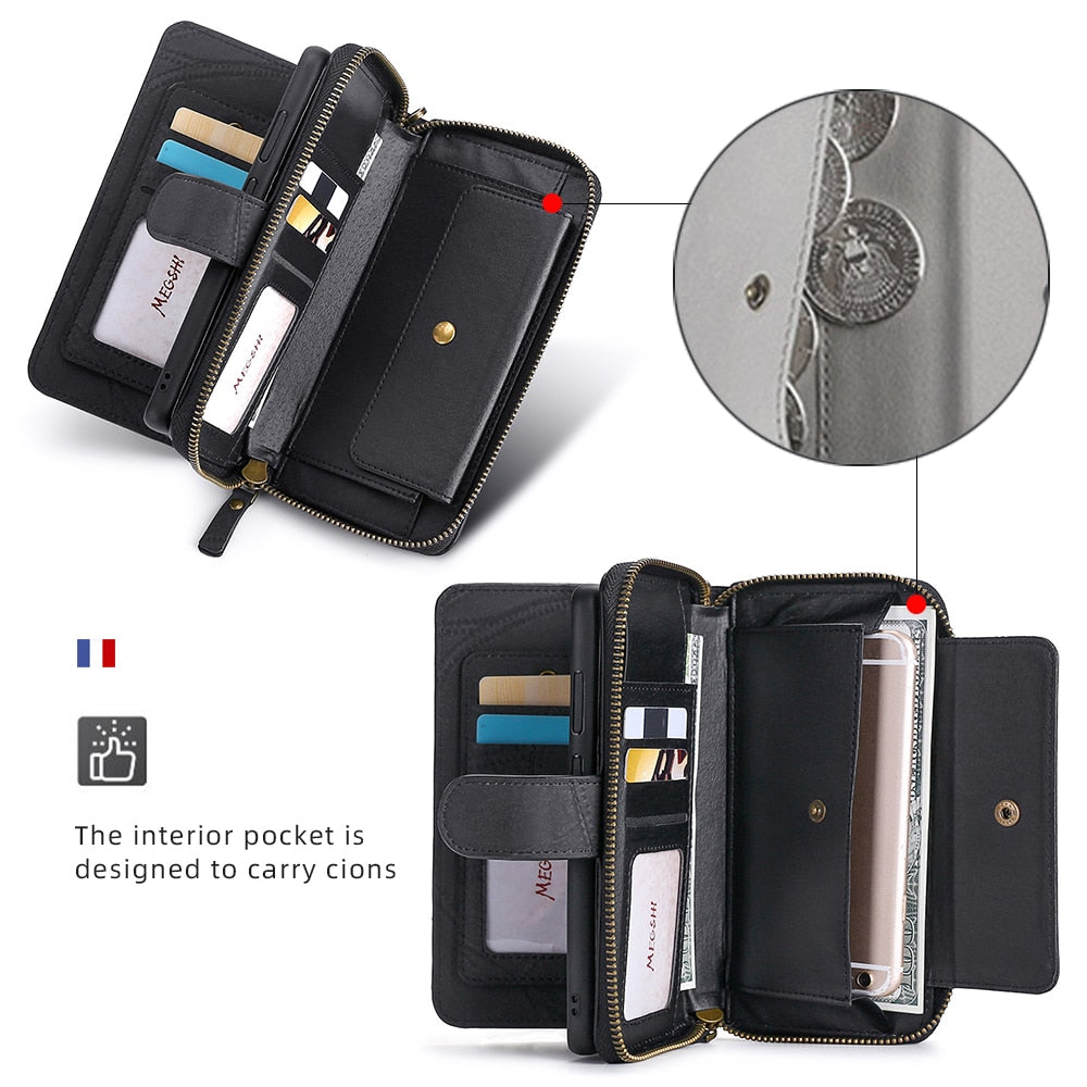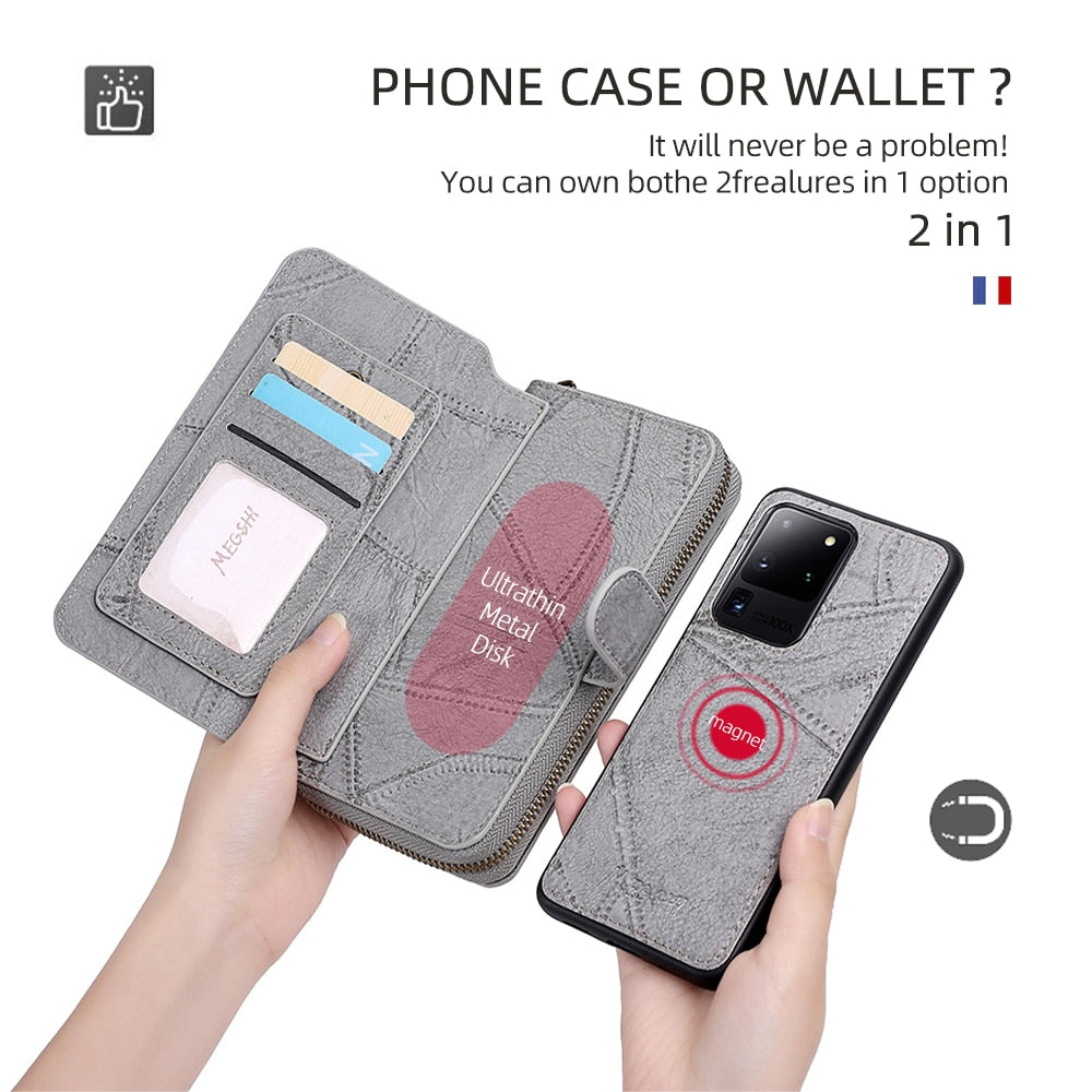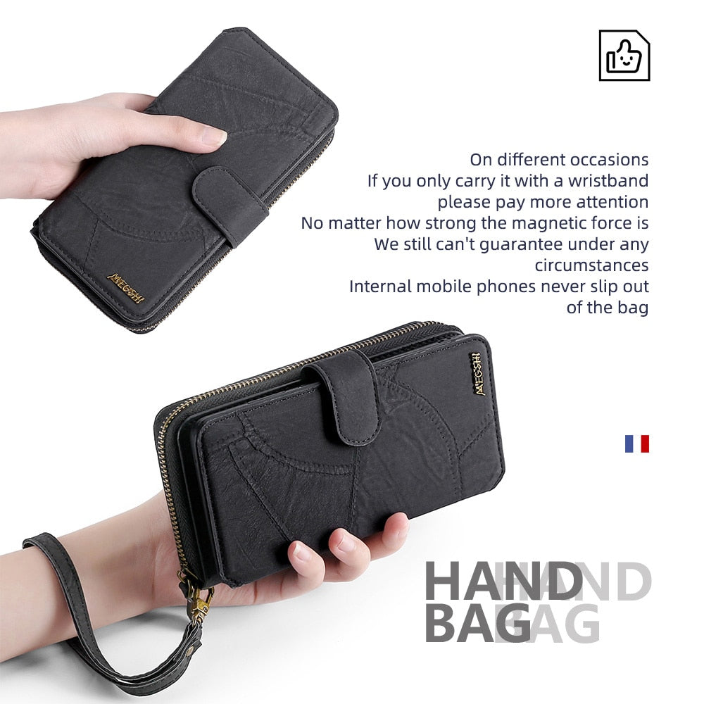 - STRONG MAGNETIC ADSORPTION: The unique strong magnetic adsorption of this mobile wallet allows you to split it at will. It can be split into a mobile phone case, a mobile phone holder and a separate wallet. Convenient, simple and cool.