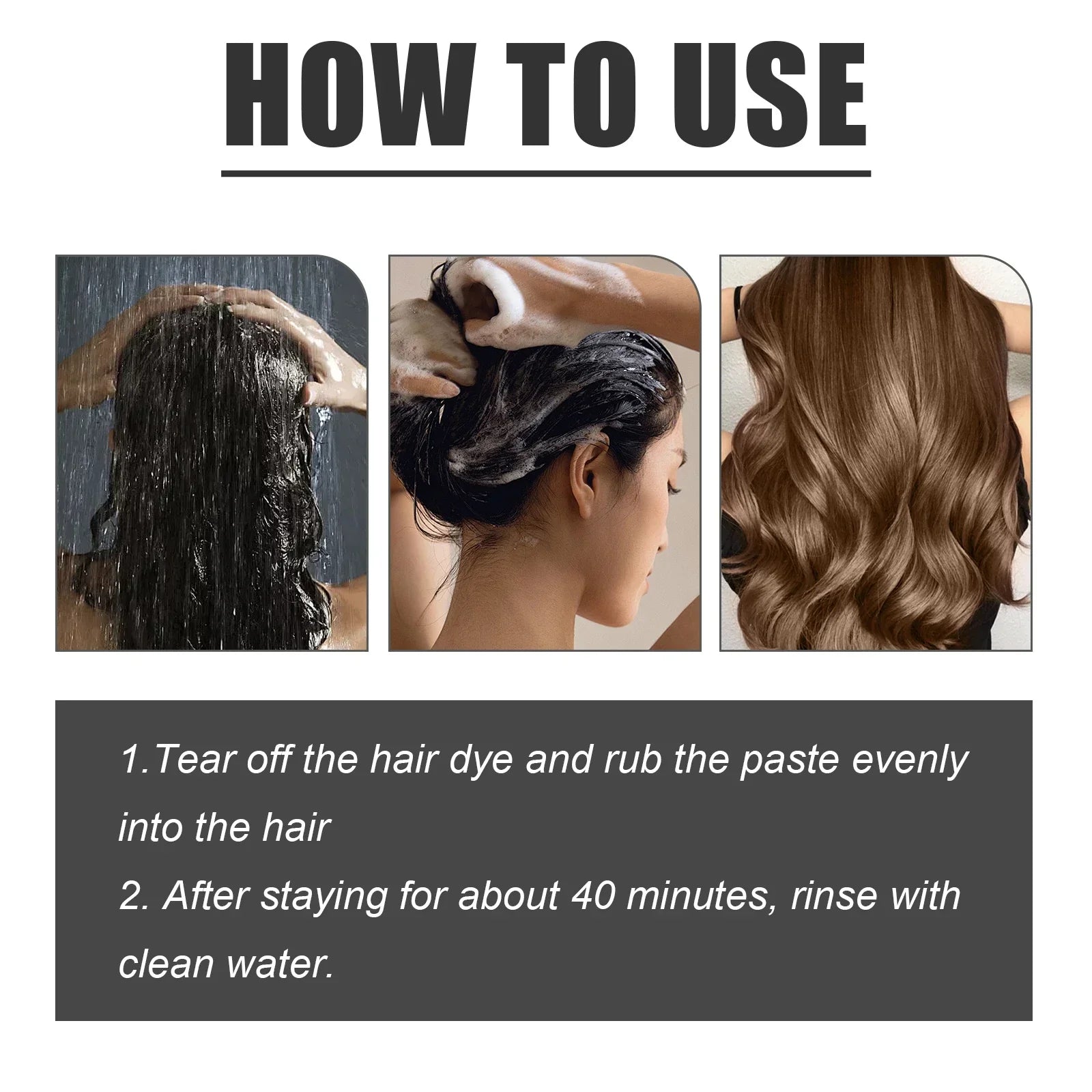 ●3. Like regular shampoo, dye hair into a fashionable color within 15-30 minutes through washing, without staining the scalp, resulting in a long-lasting effect.