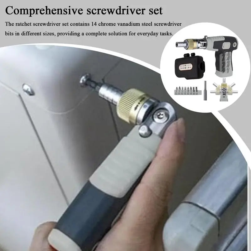 3.Come with a Kit: Maximize productivity with this ratcheting screwdriver set. Featuring 14 chrome vanadium steel bits in various sizes, this comprehensive screwdriver kit provides a complete addition for everyday challenges, ensuring effortless task completion