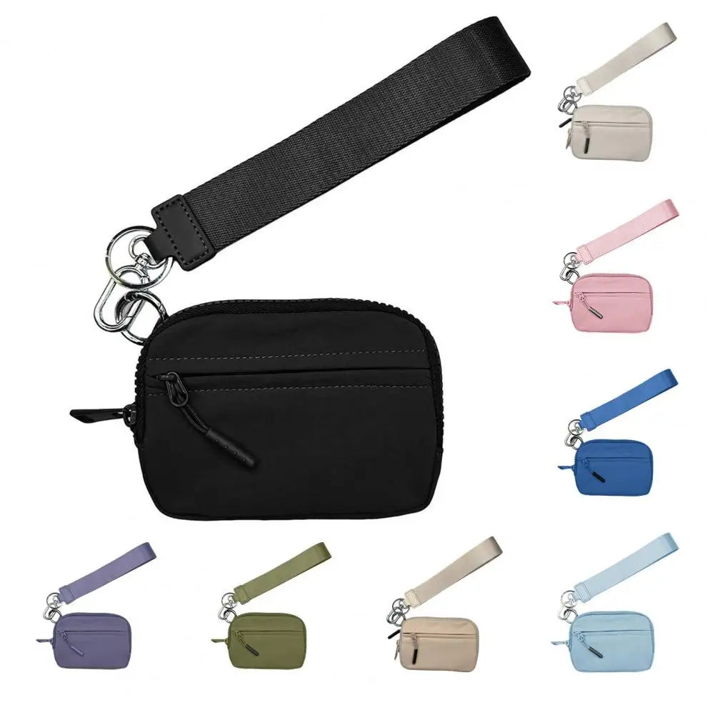 Mini Coin Bag with Wrist Strap And Multiple Card Slots Compartments Zipper Closure Portable Sanitary Napkin Storage Pouch Phone Jewelry Lipstick Keys Organizer Makeup Bag
