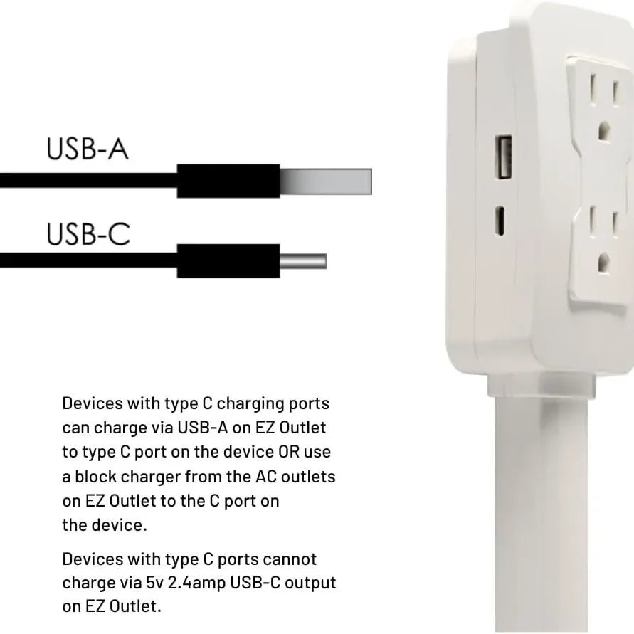 Charge All Your Devices in One Place: Equipped with USB-A, USB-C ports, and two AC outlets. The USB ports provide a 5V 2.4 Amp output, making it easy to charge all your devices simultaneously