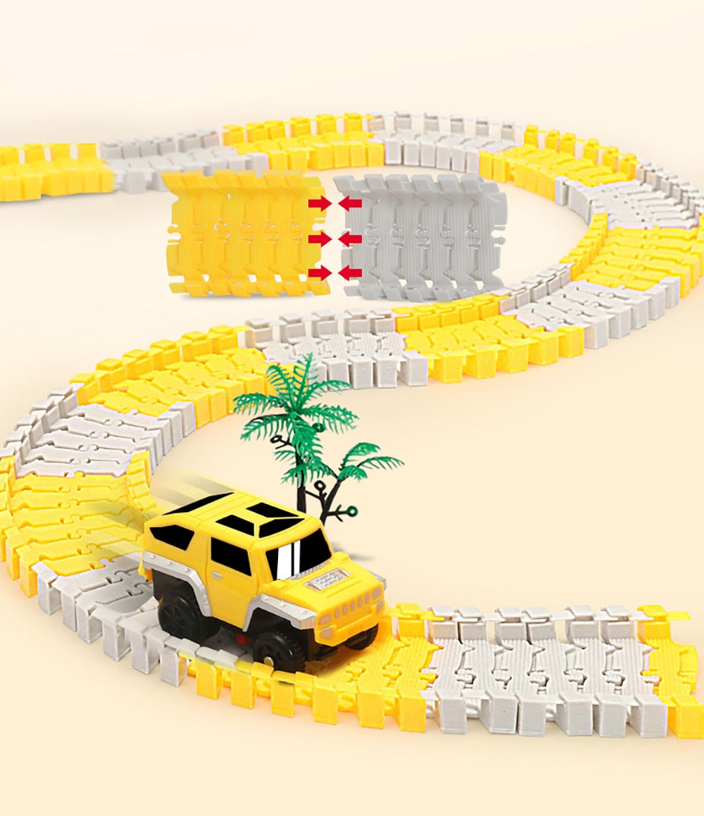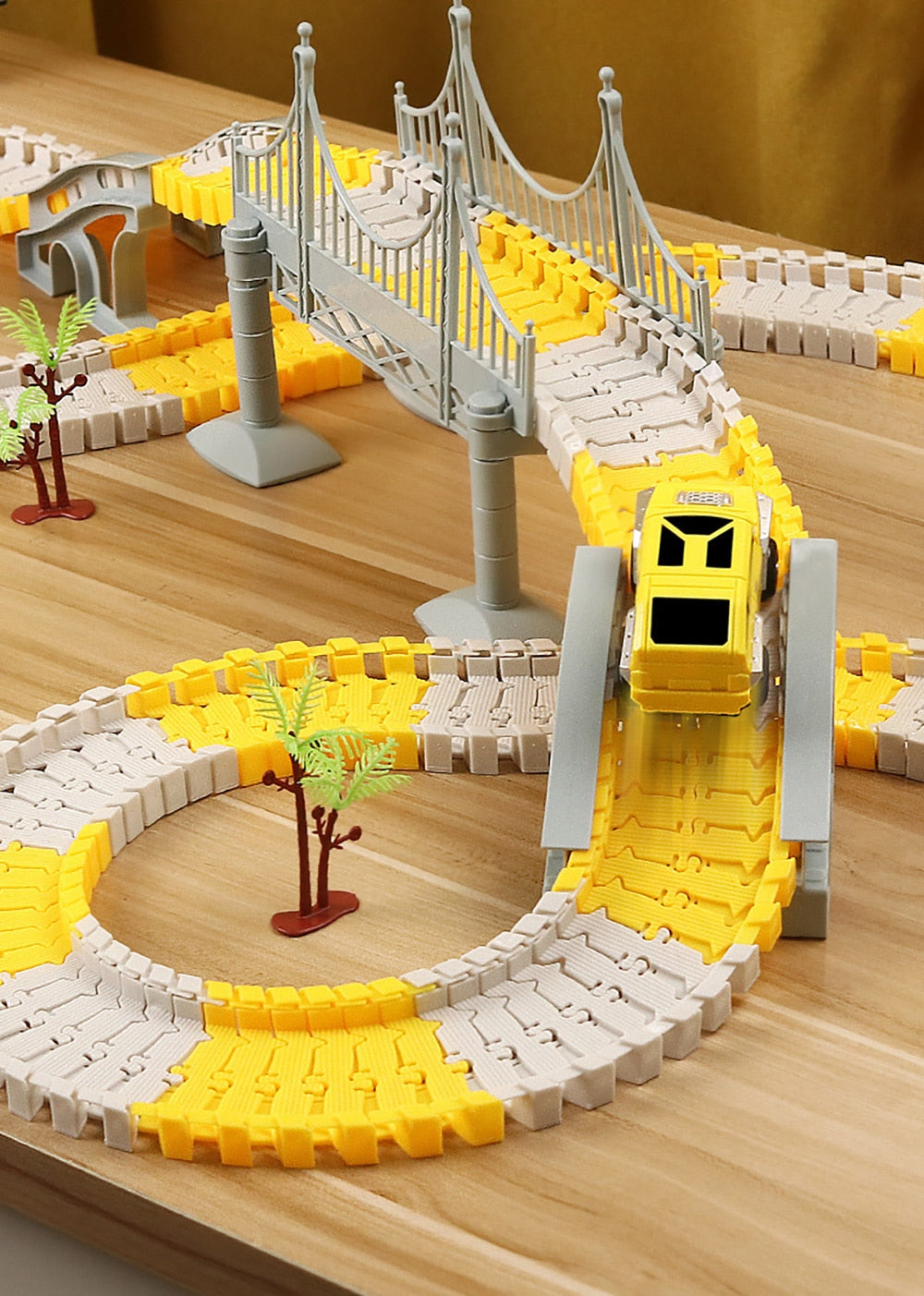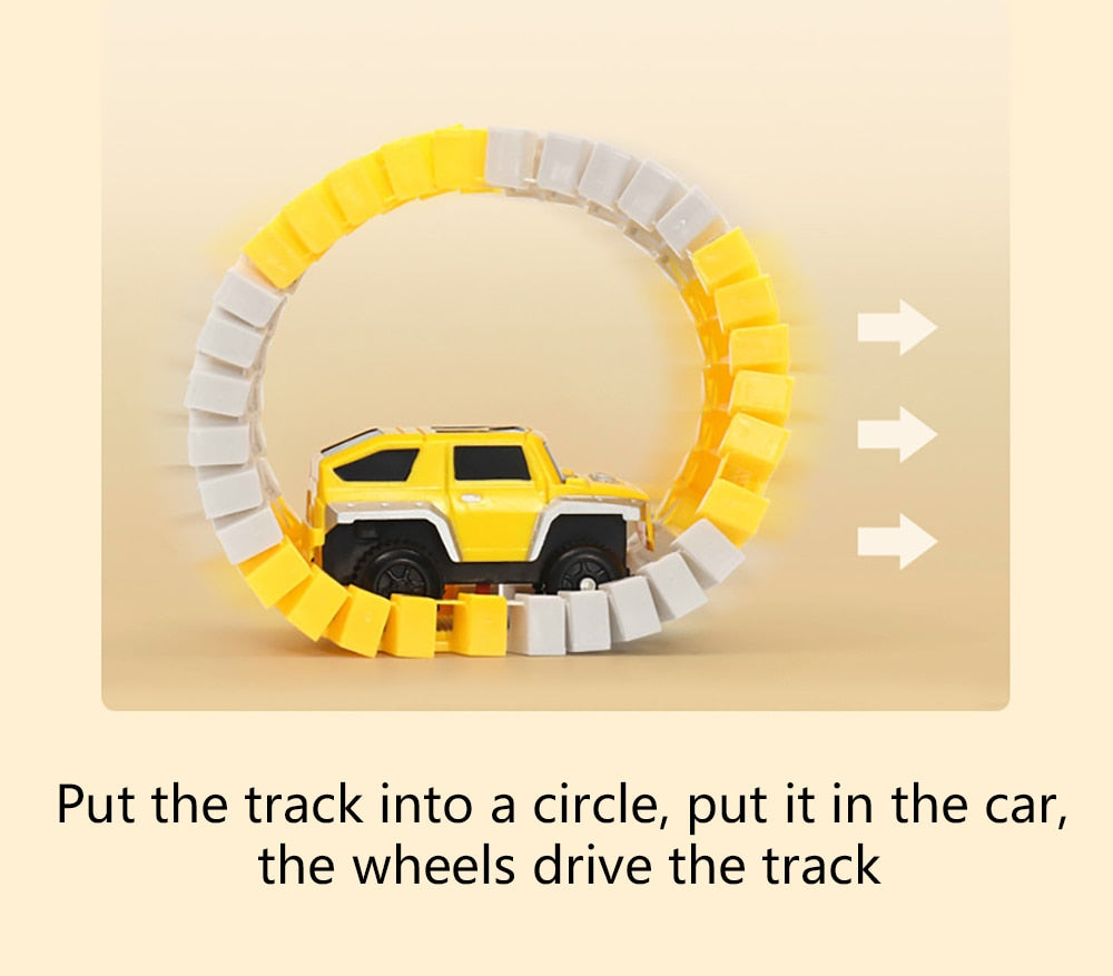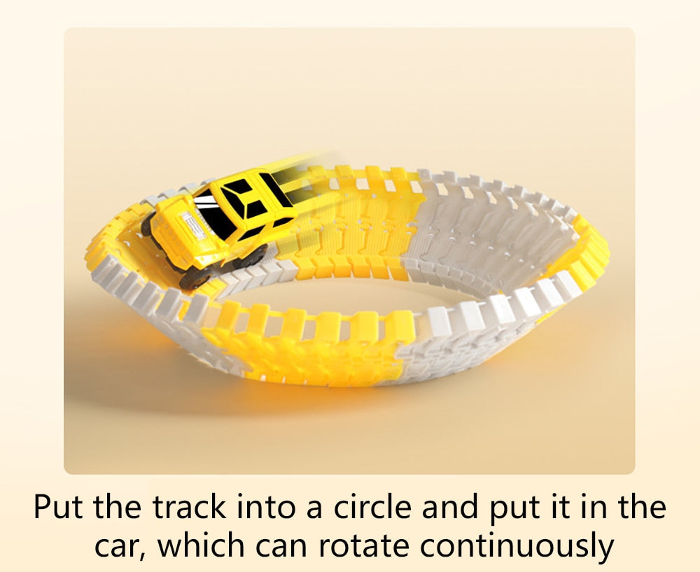 Easy To Assemble - Durable and so much fun. This track set can be twisted, turned and flexed to form the track into an infinite array of different courses. Easy enough for kids to assemble by themselves, and for parents to join in on the fun. The race track can be configured to go around infinitely for limitless fun!