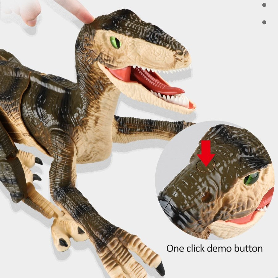 Just press button (one-click demo) to activate robotic dinosaurs movement. This realistic dinosaur toy is able to walk flexibly indoor and outdoor, use the remote controller to make it walks, swing its tail, and there will be ferocious roaring sounds out of it, which makes you feel you're at Jurassic Journey!