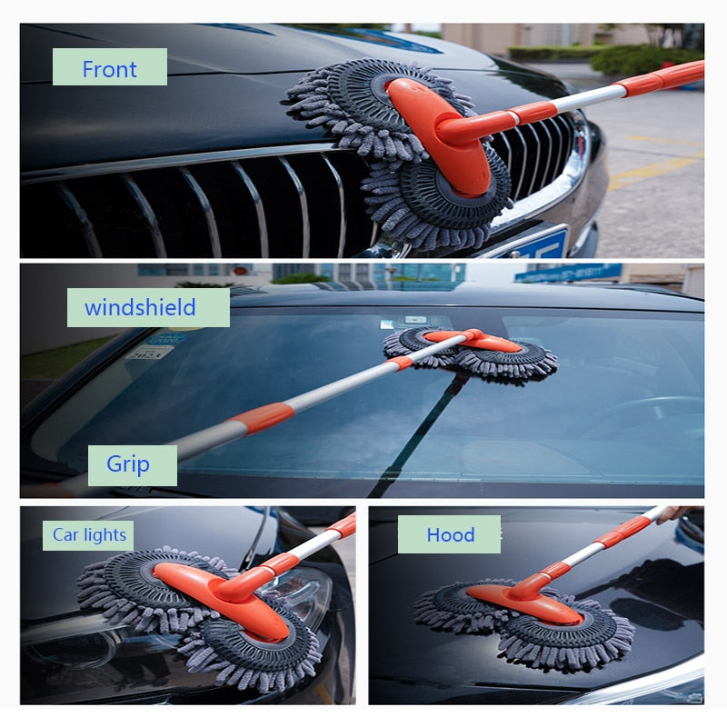 - Unique Design - The aluminum alloy rod is hard, firm, light and not easy to rust. The car wash tool is a very good multi-purpose retractable cleaning tool, this lightweight aluminum alloy design can be retracted easily. Double head design, 360-degree rotating car wash without dead ends, adjustable dust mop bar length helps you clean places of different heights and degrees that cannot be hand washed, avoid stretching, bending or twisting to do all the work, saving time and effort, easy to operate , Multipurpose and multifunctional cleaning, cleaning is cleaner.