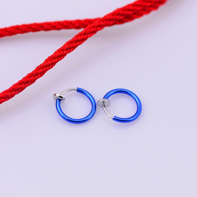 Clip-on hoop earring features with spring pin and round stopper for easy putting on and off without hurting your earlobes. -