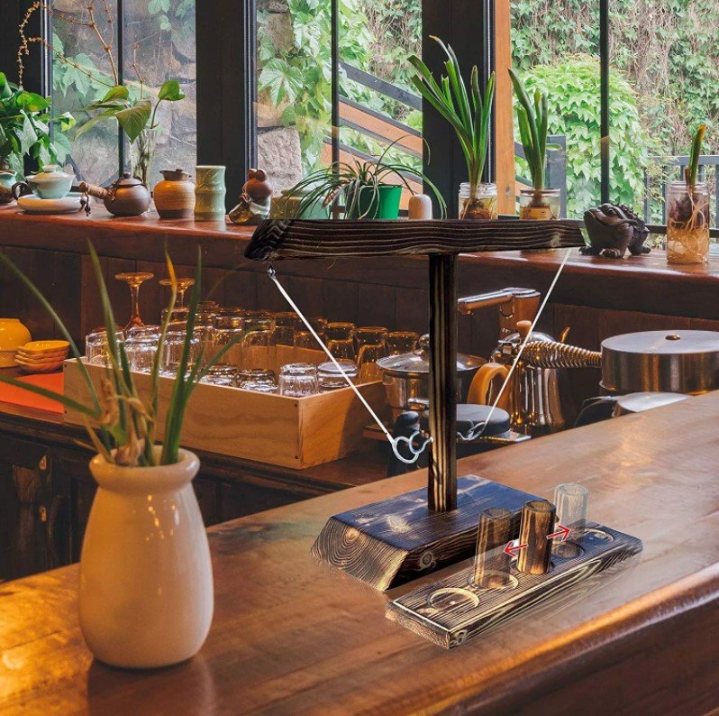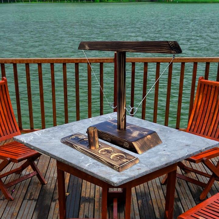 - HOW TO PLAY: Place wooden cup in the center circle, Take rings and go! Each time you land the hook, move the wooden cup 1 space towards your opponent. Player wins when the wooden cup moves off the end of the ladder. Raise the Stakes, Play every game Style by agreeing on a wager with your competitor before the game!