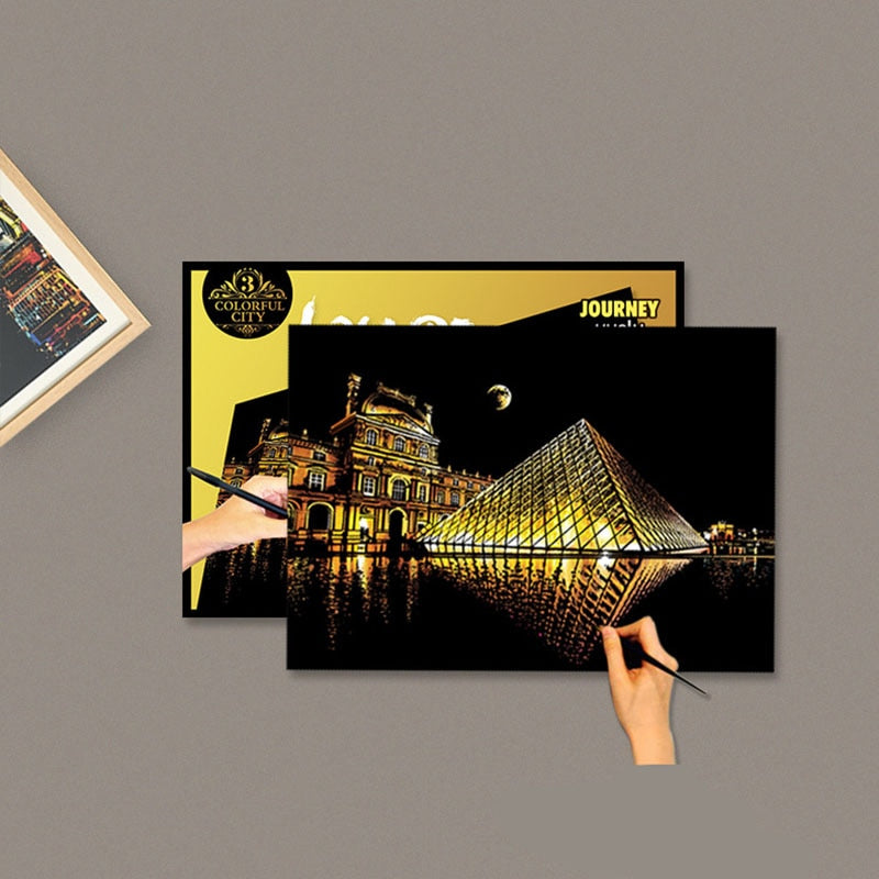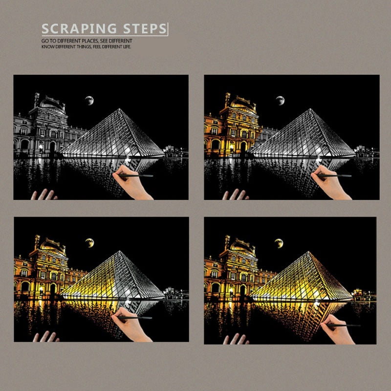 Scratch-Off Rainbow Painting - World Famous Tourist Attractions 16 X 11.2 Inches