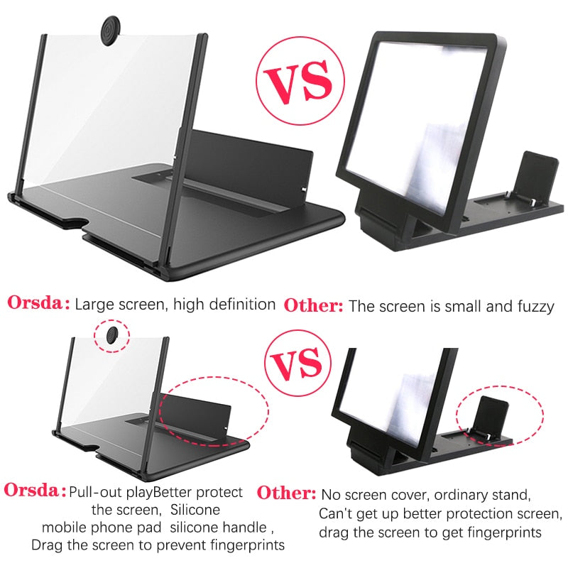 This amplifier features an HD advanced optical technology to magnify screen of your devices without blur/distortion. By magnifying, it effectively relieve visual fatigue and discomfort that comes from prolonged focusing on small screen. Watch movies comfortably and get cinema-quality experience now!