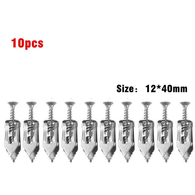 The split in the ribbed anchors expand on two opposing sides as you tighten the screw, increasing holding power. Serrated on both sides to increasing the metal anchors hanging power up to 10kg.
