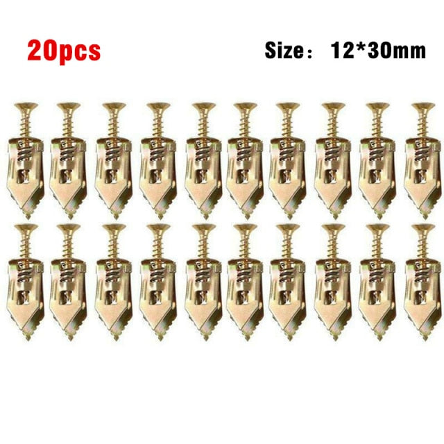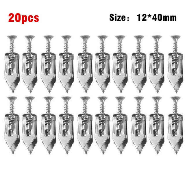 Self-Drilling Anchors Screws features expansion design in the ribbed anchors and tapered sharp head that expands on two opposing sides as you tighten the screw, increasing the holding power. Serrated on both sides to increasing the metal anchors hanging power up to 10kg. Work great on hanging all kind of item on your home decor, such as picture frame, wall lamp, curtains, clock, plants, etc.