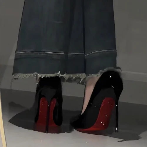 Sexy black red bottom rhinestone high heels