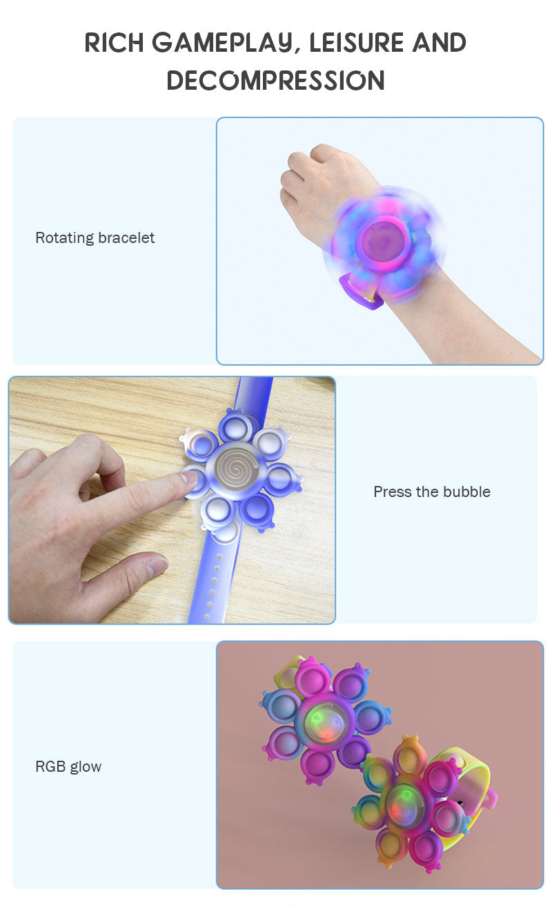 Stylish spinning pop bubble bracelet that also serves as a good sensory toy. The bracelet's fun and quirky style make it easy to match with different outfits. Making you look more interesting and charming.