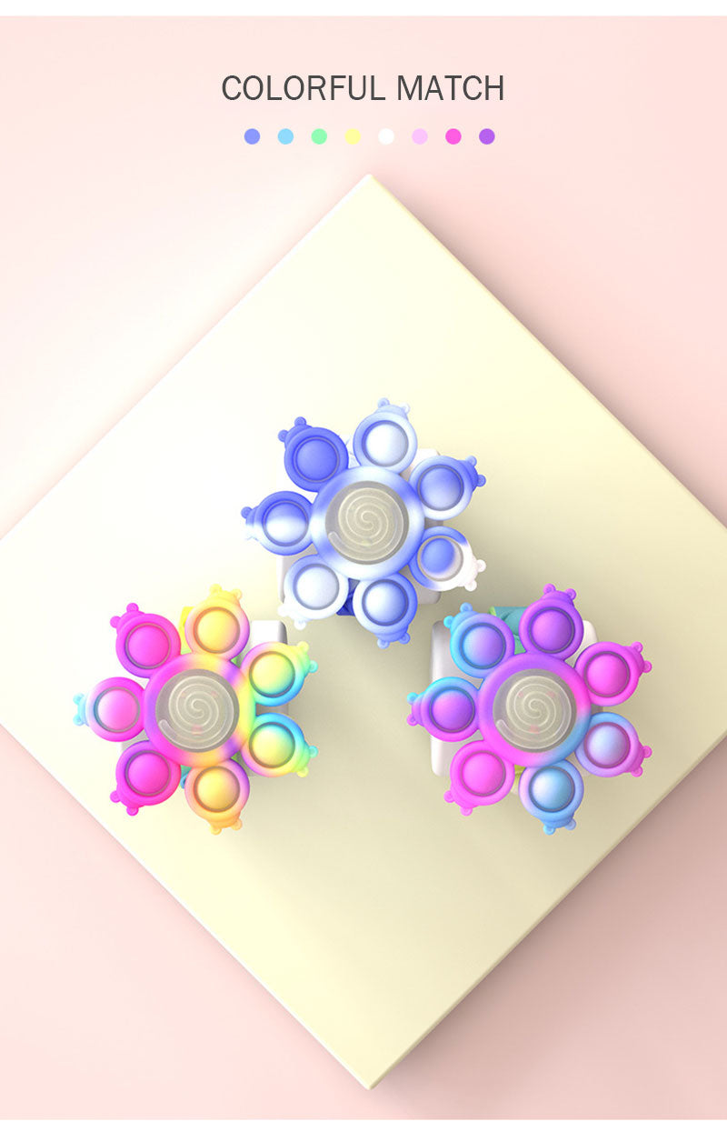 This fashionable bracelet is made with decompression silicone with poppable bubbles & a spinning flower that lets you spin & pop again and again! Relieving stress, anxiety, boredom, fatigue, and more! Features a colorful design that gives off a fun and quirky touch to your OOTD. Allowing you to be as stylish as you want while enjoying the sensory stimulation like a bubble wrap!