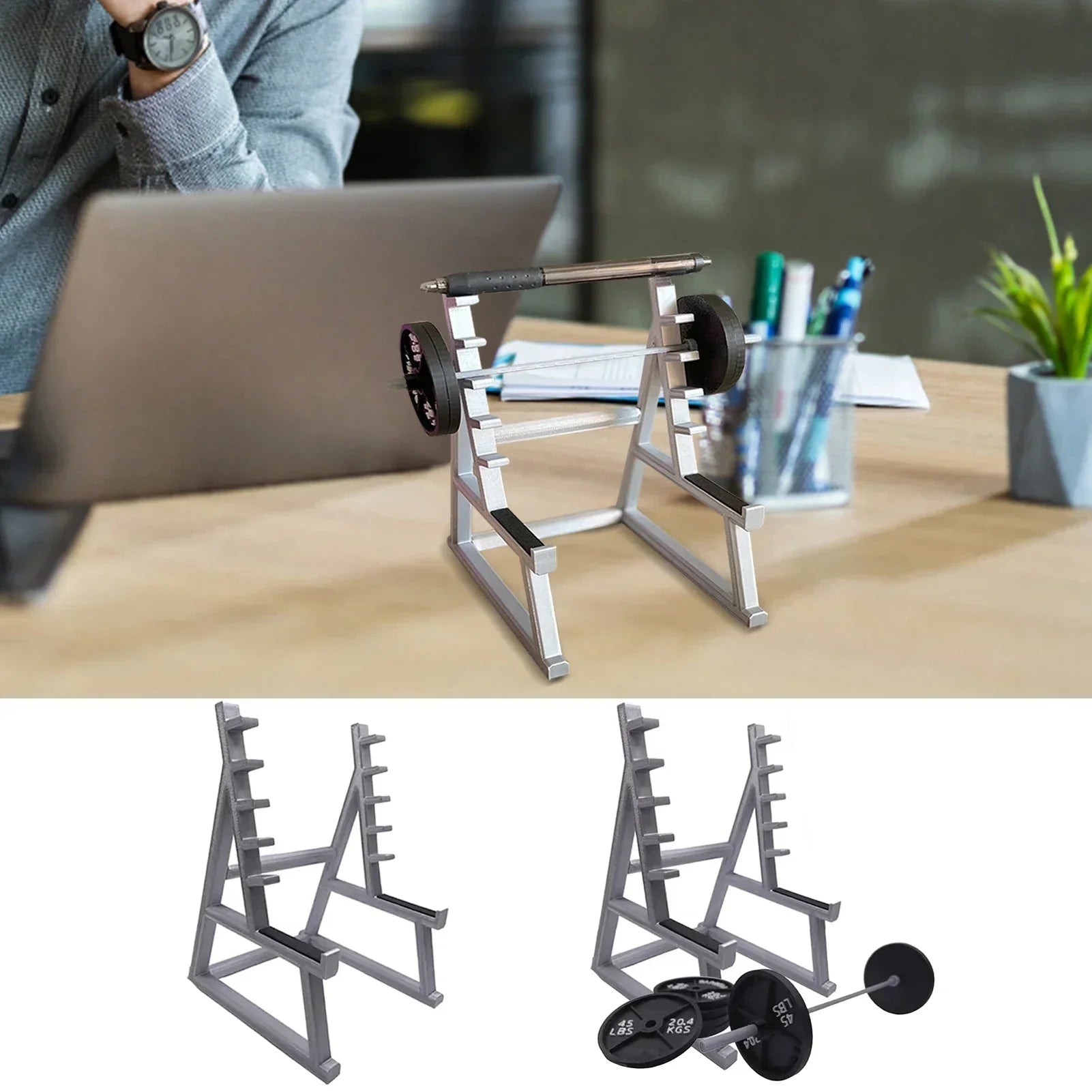 2.Ingeniously Made: The pen holder is exquisitely made; it resembles a small squat rack with a barbell and weights, adding a bit of playfulness and exercise to your desk.