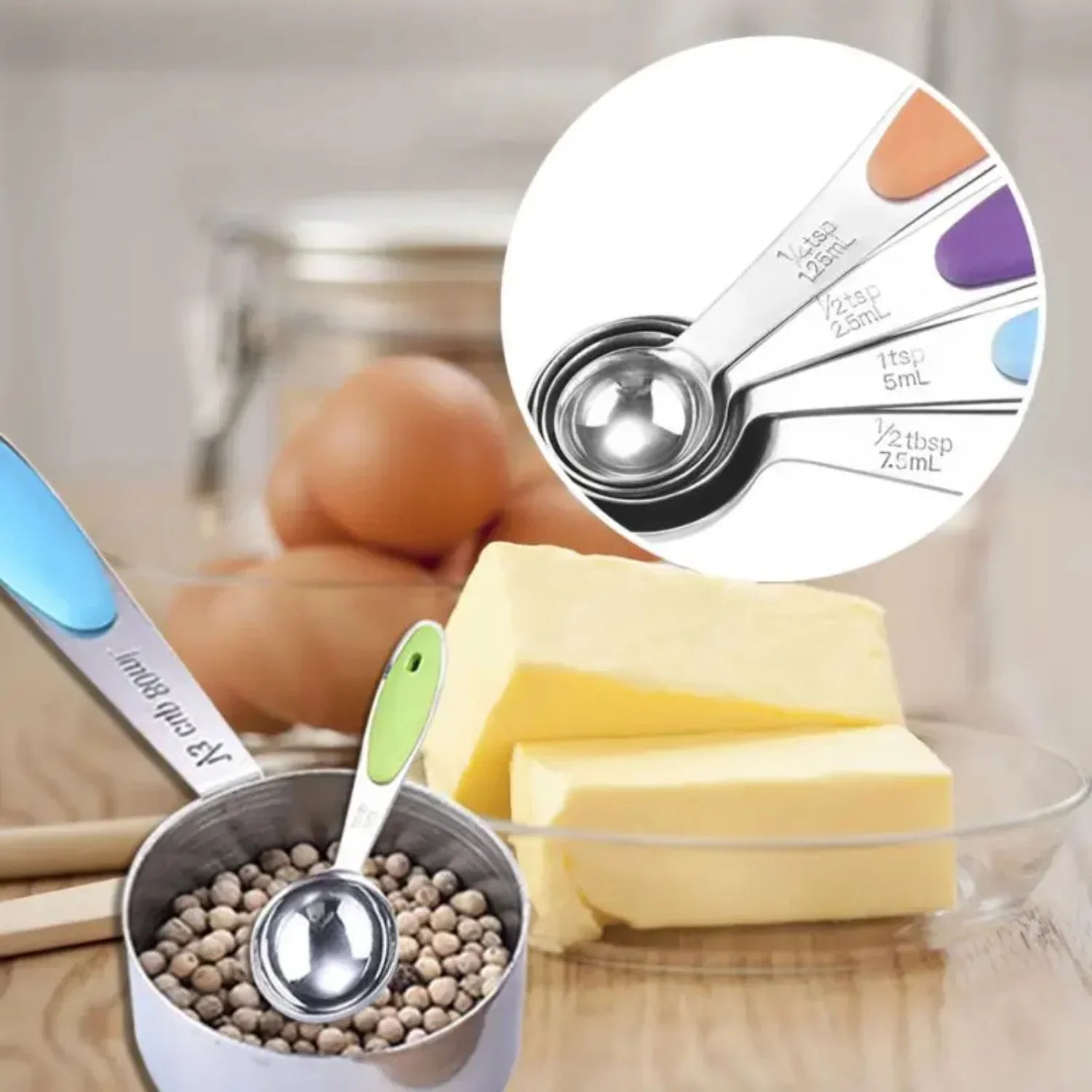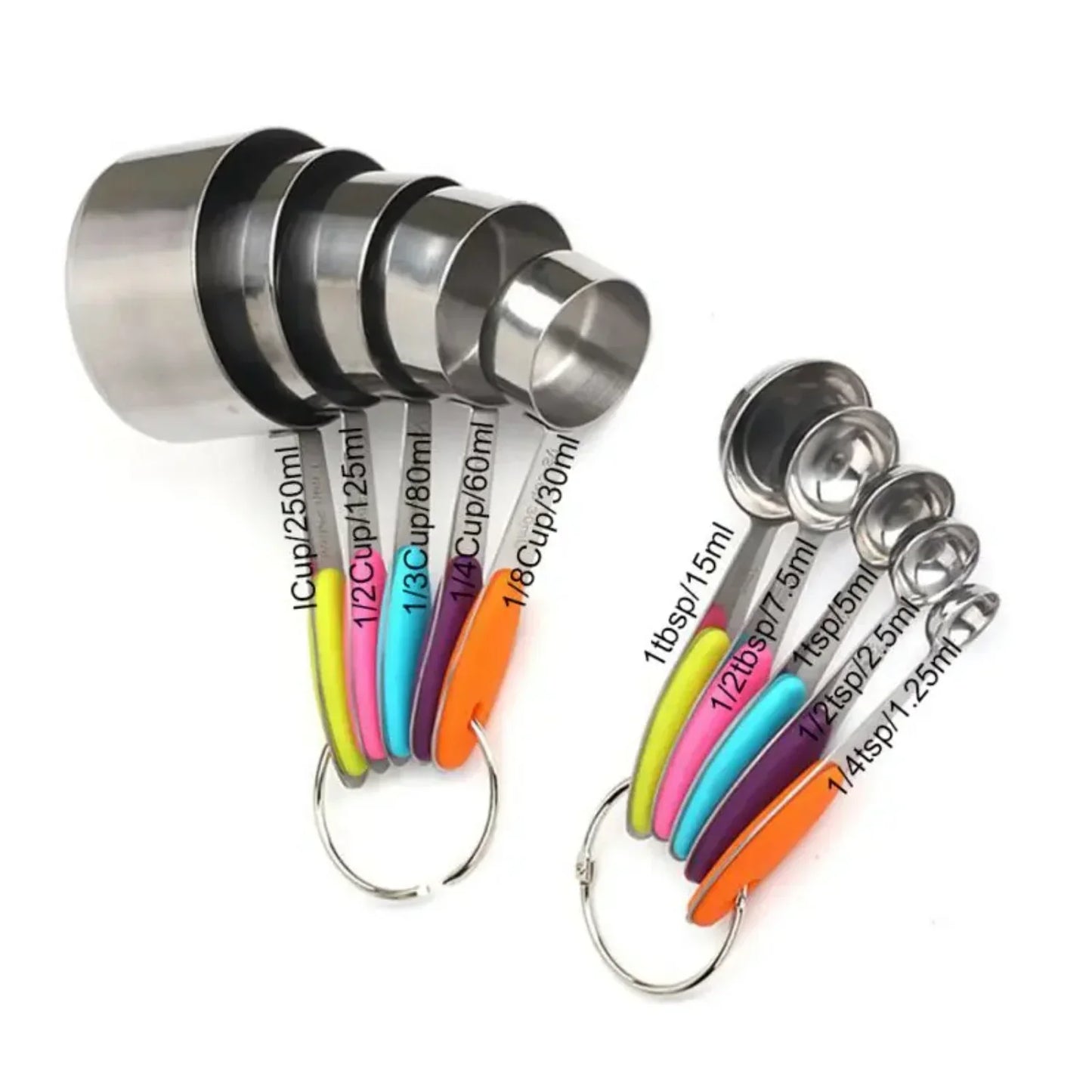 1. Vibrant and practical, this Colorful Measuring Cups Premium Stackable Kitchen Measuring Spoon Set is a must-have for any kitchen. Made from high-quality materials, these measuring cups and spoons are easy to use and store.