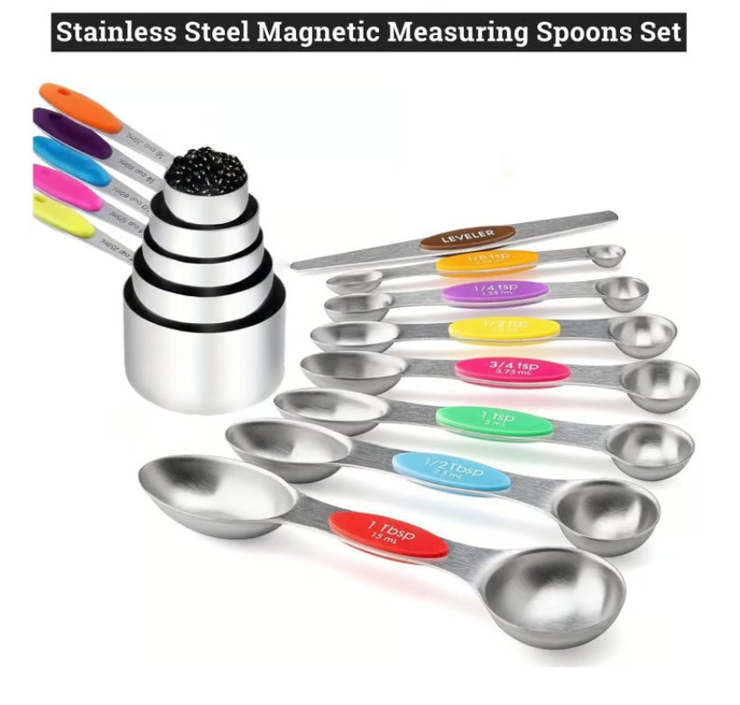 2. Upgrade your kitchen tools with this Stainless Steel Measuring Cups and Spoons Set. Made with high-quality stainless steel, this set is durable, rust-resistant, and easy to clean.