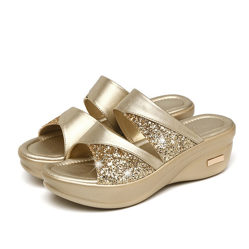 Summer Glitter PU Wedge Platform Comfortable Sandals For Women