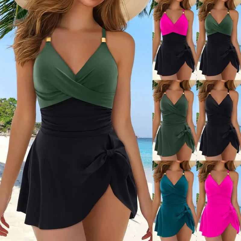 The plunging V-shape with intersecting 剪裁 enhances neckline beauty while adding a touch of allure. -