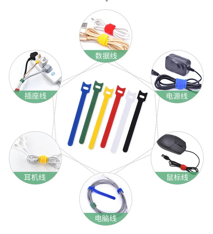 50Pcs Magic tape Cable Tie cord Computer cable Earphone Winder tie down strap cable tie nylon strap power wire management