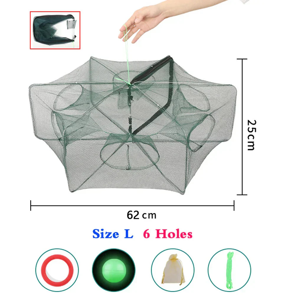 - Fishing net trap with 6/8/12/16/20 enter design, great for catching smelt, eels, crab, lobster, minnows, shrimp and crawfish.