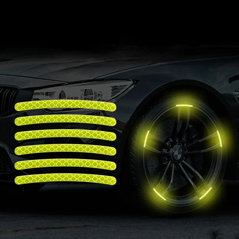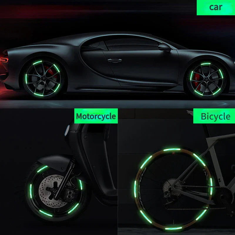 COOL SAFETY DECORATION : This tire stickers has a good reflective effect and can reflect any light source. It can not only improve safety at night for your driving, but also make your car / motorcycle / bike looks so cool.