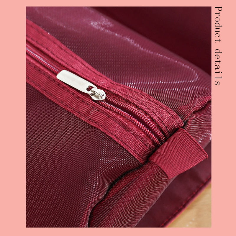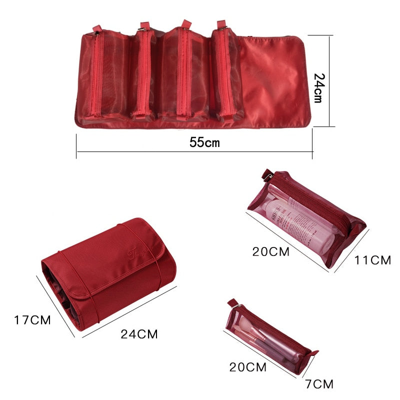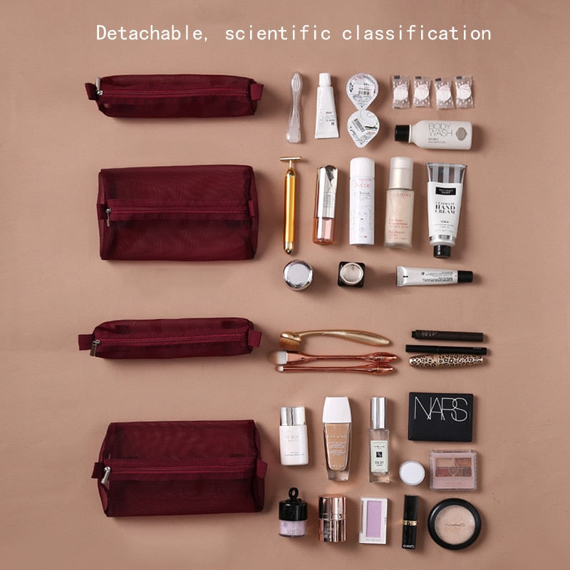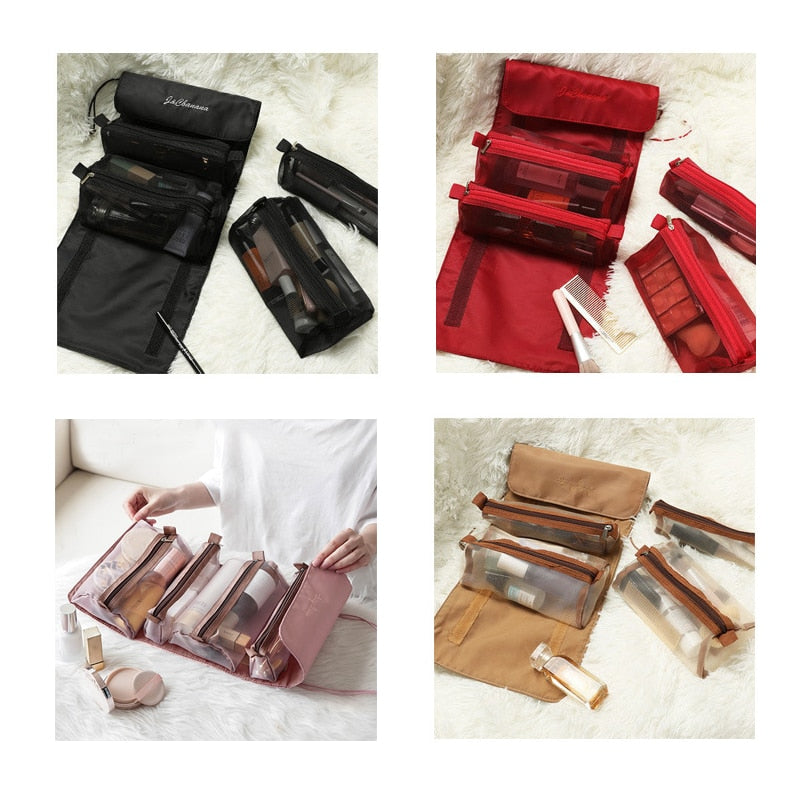 There are 4 detachable pouches for classified storage of all your cosmetic, skin products and everyday toiletries. The thoughtful mesh pouches make all the contents clear at a glance, you can easily find what you need.