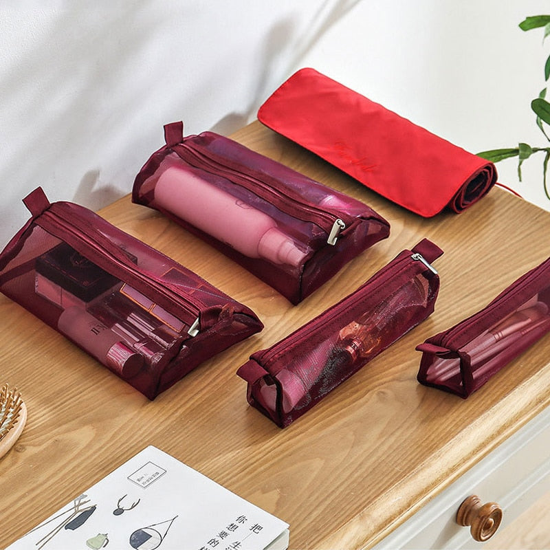 The clear mesh pouches allow for easy visual inspection by TSA at the airport and other security measures. No more taking all of your personal, private belongings out!