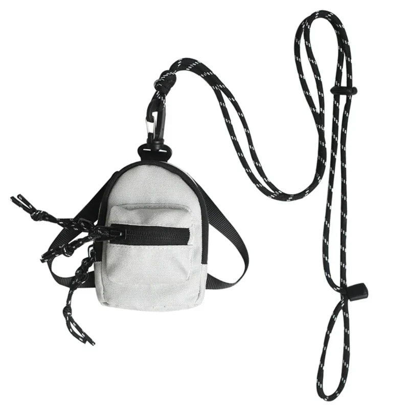 ZIPPERED POCKET. This small travel purse bag has large compartment. 2 Zippered pockets. Each mini bag with plastic carabiner, easily hang-it-on the backpacks, travel cases, keychains.
