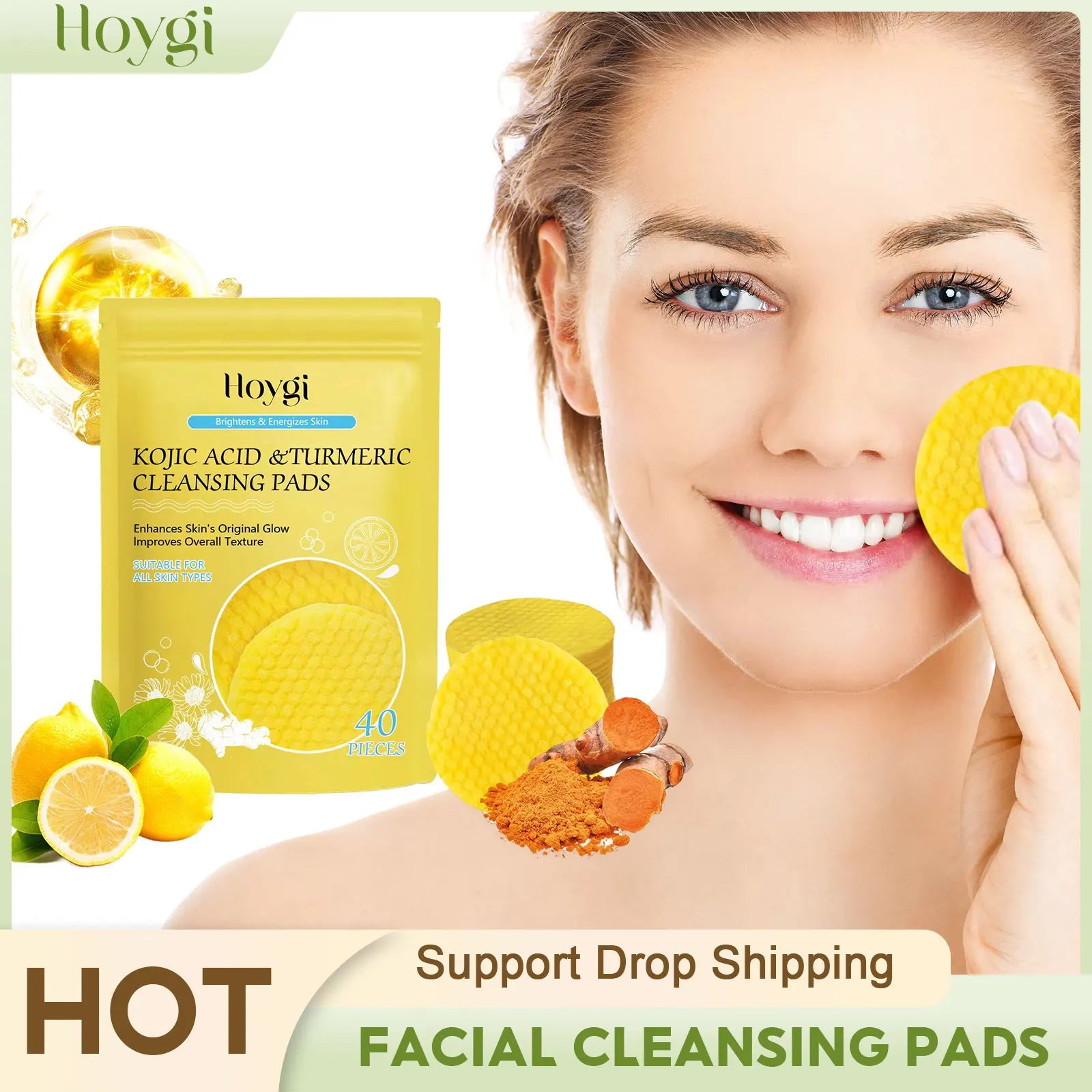 Hoygi Facial Cleansing Pads Exfoliating Massage Balance Oil Removing Dead Skin Dark Spot Shrink Pores Smooth Turmeric Face Cleanser 40pcs / 80pcs / 120pcs (Specification Optional)