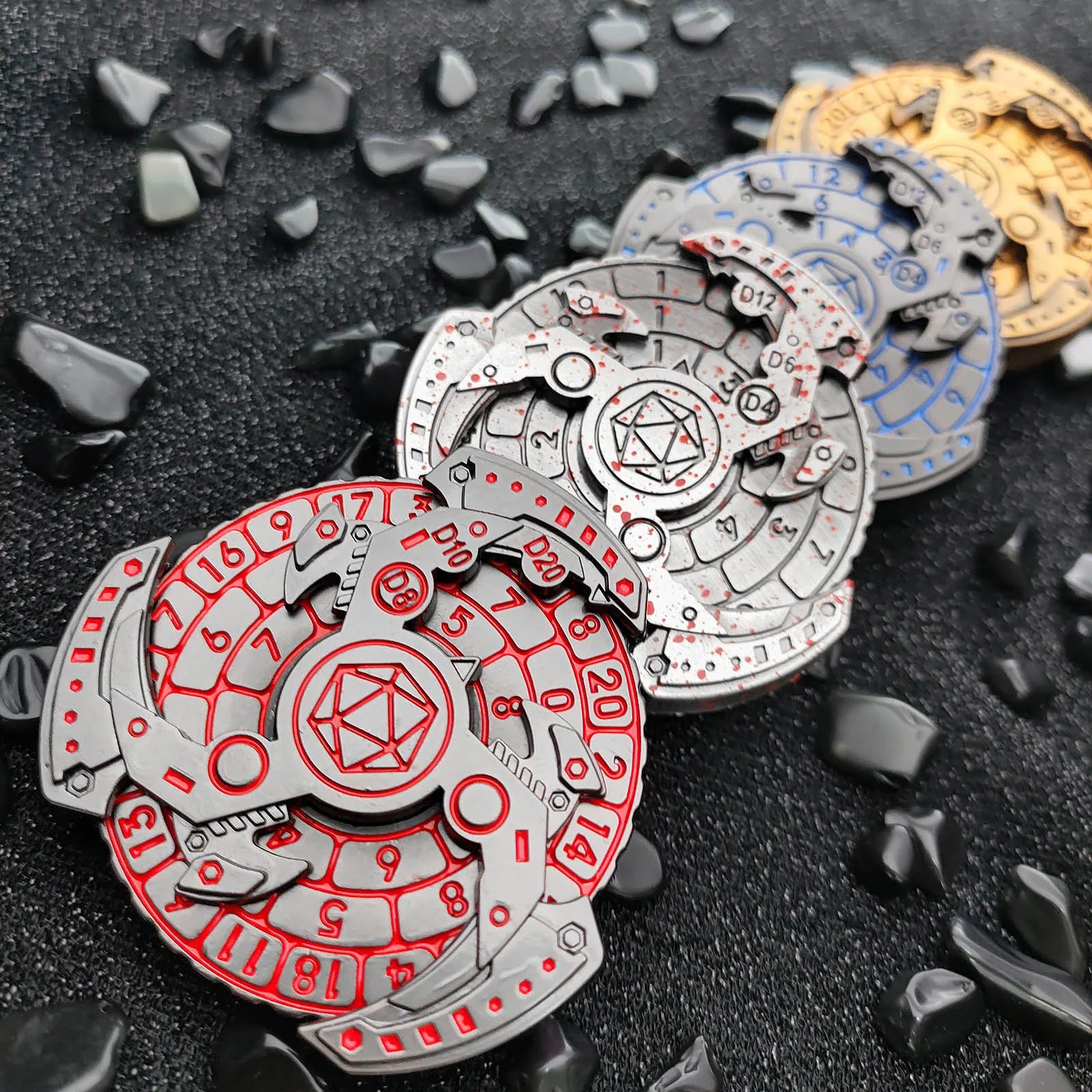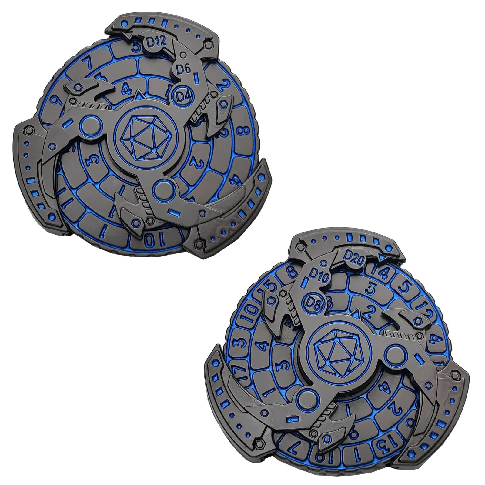 With three rows of engraved numbers on each face, this gyro allows for easy navigation and precise results. Simply turn the compass, and the pointer on the dragon's tail will effortlessly point to the appropriate outcome. Whether you're playing classic RPG board games or engaging in other RPG and card games, these quality polyhedral metal dice are perfect for adding excitement and accuracy to your gaming sessions