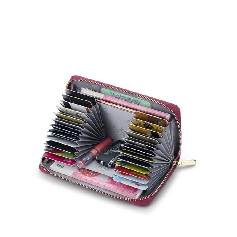 The credit card compartment is designed in accordion style,you can put cards in vertically instead of horizontally. It’s so much easier to get cards out.