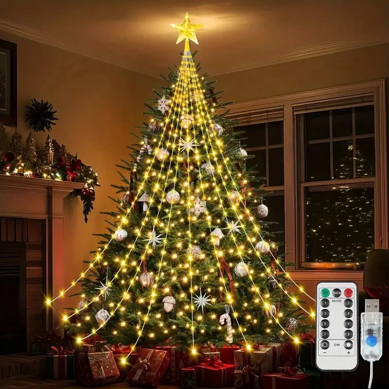 Waterproof Christmas Tree Waterfall Lights with Ring