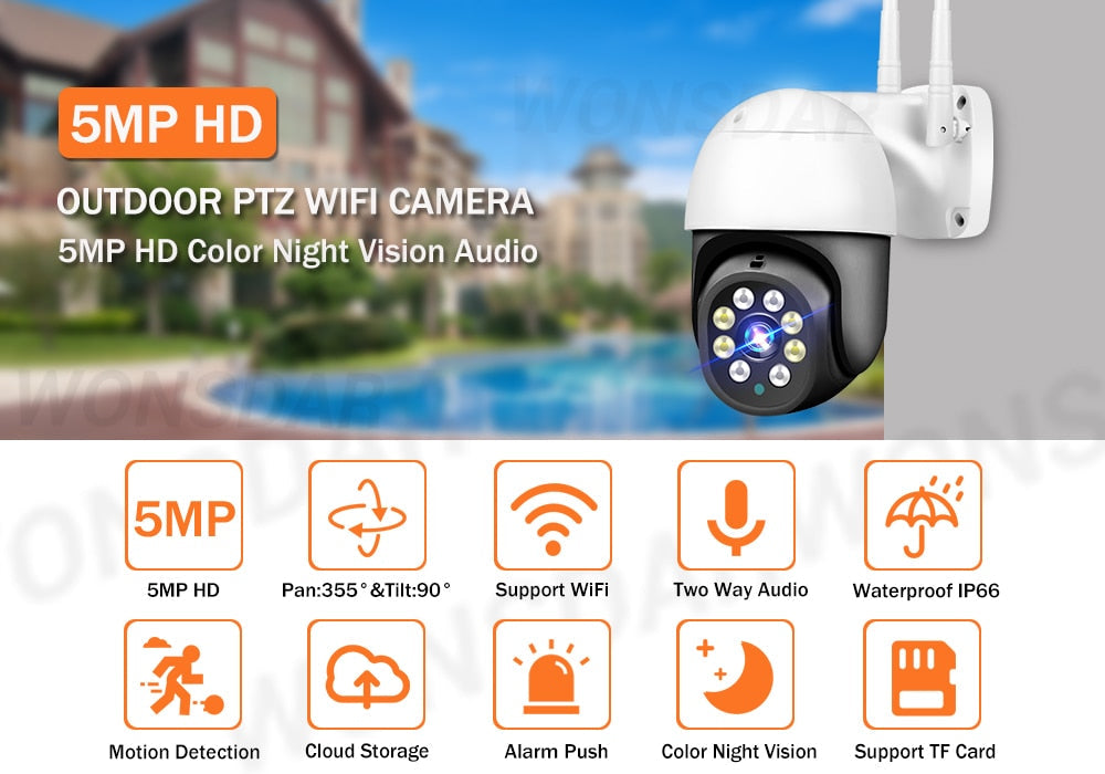 WATERPROOF Equipped with IP66 weatherproof case, IP66 level waterproof rating makes it perfect for outdoor surveillance needs, protects every inch of your home through every season with our outdoor security wifi camera.