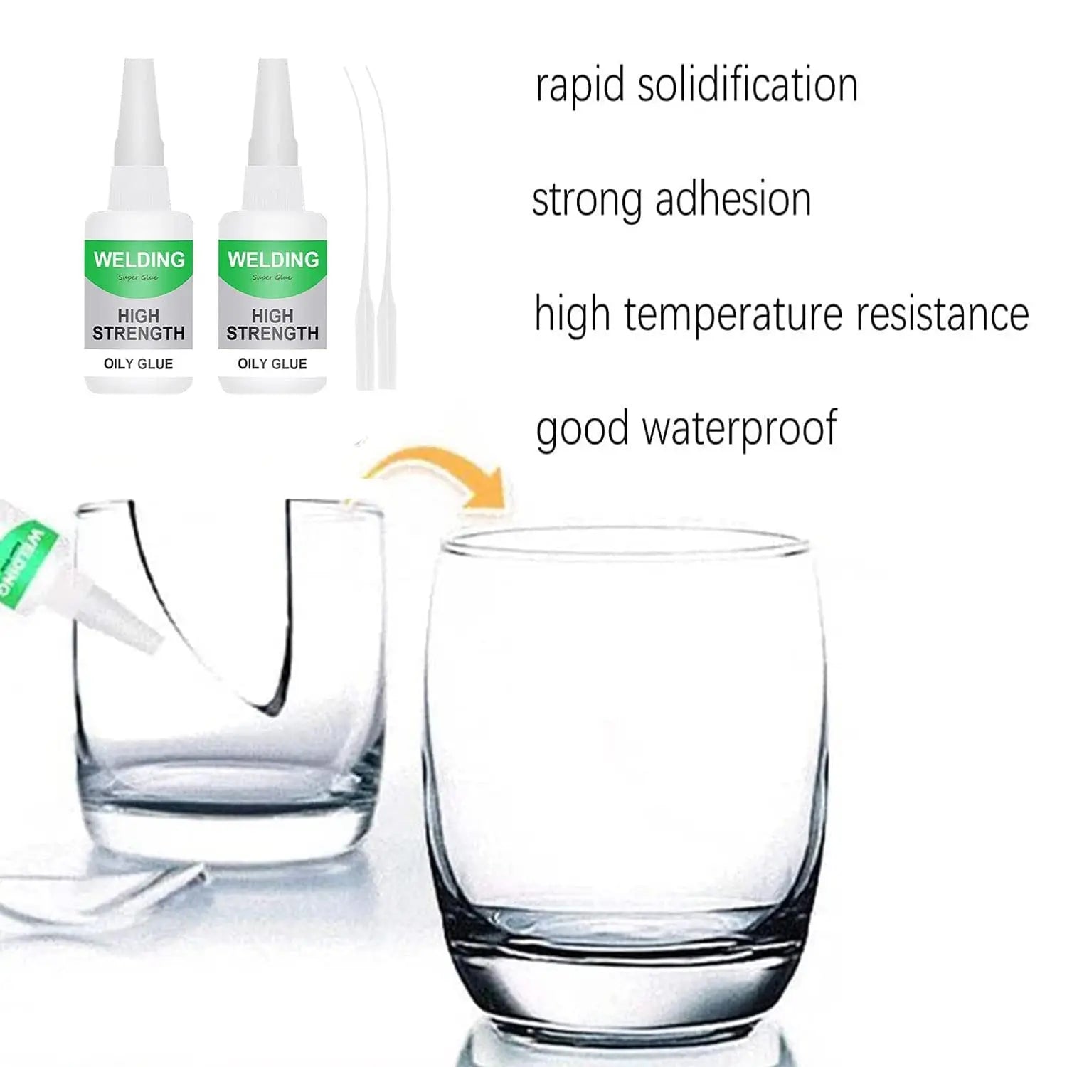 【Instant Bond】Welding High-strength Oily Glue Achieves maximum bonding strength in 8 – 10 seconds. Dries clear without strong odor.Quick and easy. Repairs like magic.