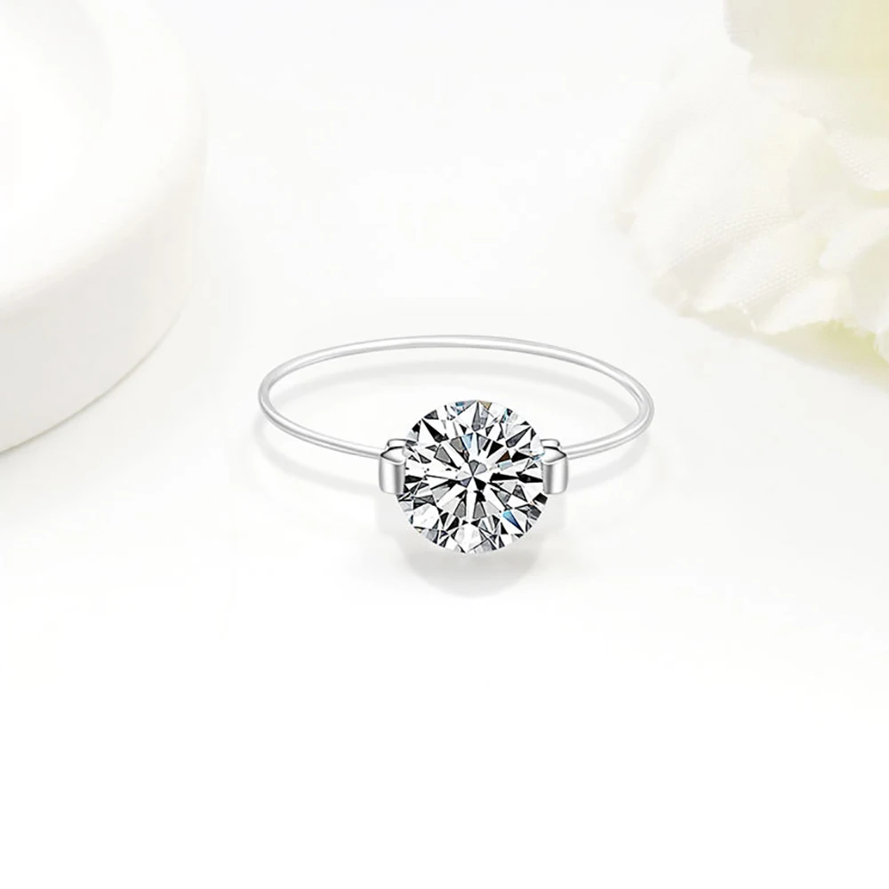 TEMGF 6mm/8mm Zircon/Moissanite Ring 925 Sterling Silver High Quality Fishing Line Ring for Women Fashion Simple Fine Jewelry