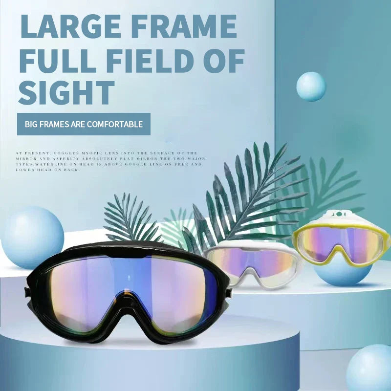 Swimming goggles for adults, large frame, electroplated waterproof and anti fog integrated earplugs, large field of view, men's and women's eye protection, swimming goggles