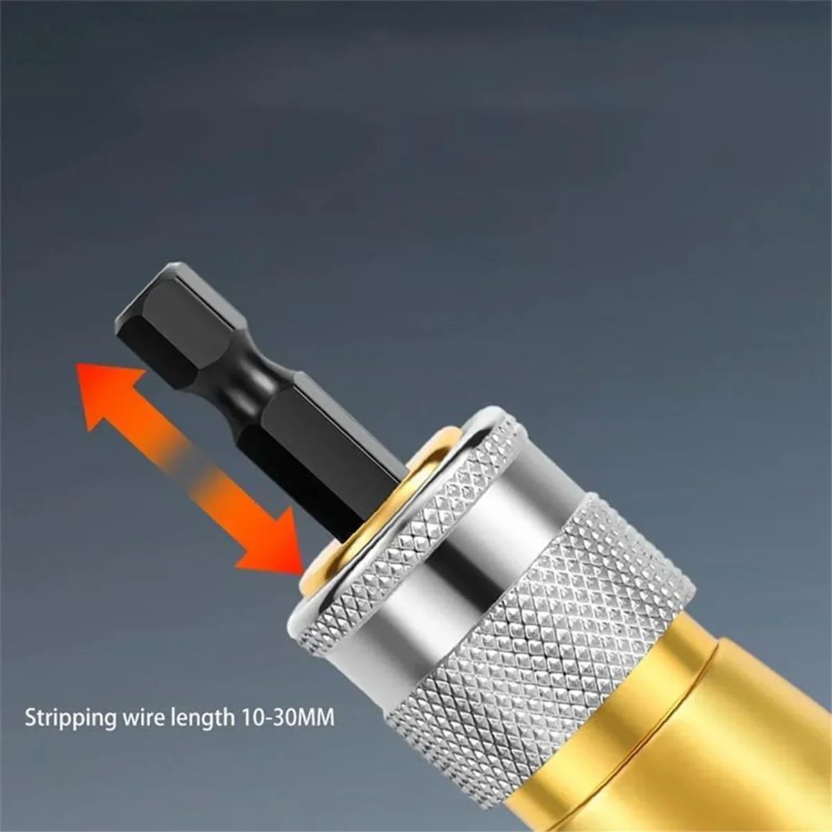 [Electric Wire Stripper Set]:--- Wire Twister Tool For Drill Can Highly Improve Your Work Efficiency, Prevent Hurting Fingers And Relieve Fatigue,It Can Greatly Improve Work Efficiency, Prevent Finger Injuries, And Relieve Fatigue,Electric Wire Stripper Made Of High-Quality Metal, Using A High-Temperature Extraction Process, High Hardness, Strong Wear Resistance, And Good Heat Resistance.